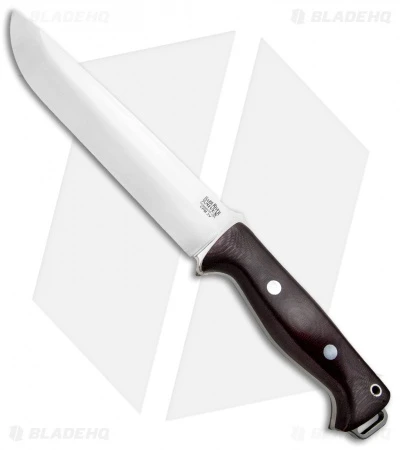 The Bark River Bravo II fixed blade knife is a massive tool for chopping, splitting and blazing a trail. The 12″ blade with saber ground convex edge makes short work of large limbs and the slightly canted handle adds additional leverage when chopping. Despite it’s large size, with the generous finger choil, you can choke up for control right at the cutting edge for those finer cutting tasks. The hand made leather sheath with snap closure and ferro rod holder securely stows the Bravo II.