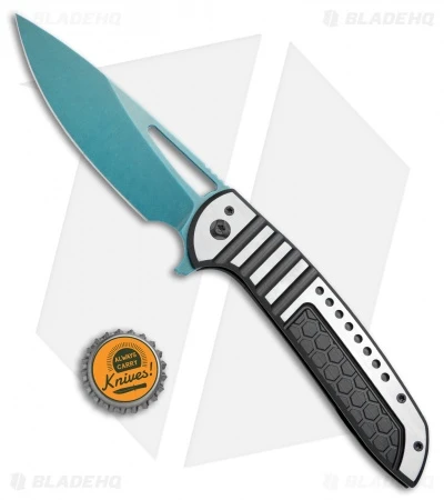 This Stinger XL has a Saber handle design in a two-tone black/satin finish with black titanium hardware and pocket clip. It comes outfitted with a Force User Blue finished blade.