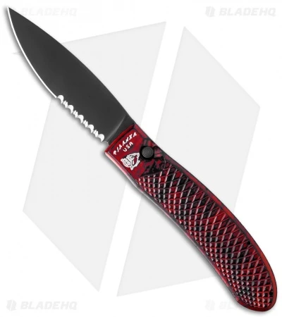 The Toxin is the latest edition to Piranha’s line of innovative automatic knives. It has a large ergonomic handle and a 3.75″ leaf shaped blade made from 154-CM steel. The handle was designed for comfortable everyday use and features a grippy texture and a titanium pocket clip. It is made from an anodized aircraft alloy with a Type 3 Hard Coat for strength and durability. The Piranha Toxin makes a great EDC knife that is both comfortable to use and carry.