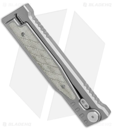 - Bead blasted titanium handle with textured micarta scales in green.