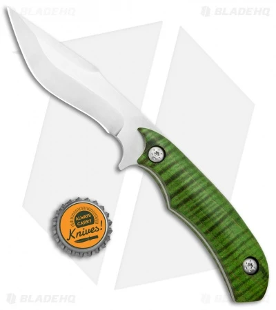This model of the Skelton Bladeworks custom HellRaiser V2 sports a satin finished blade made from Nitro-V and polished green curly maple handle scales.
