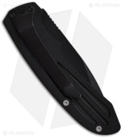 - 4034 stainless steel, drop point blade with black finish, partially serrated edge, and thumb stud opener.