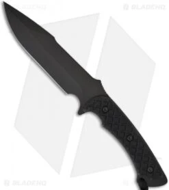This Horkos knife has a black Tungsten DLC SpartaCoat drop point blade and black Micarta scales. Includes a black nylon MOLLE sheath.