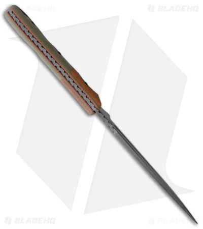 - Tan and green micarta handle for a great grip.