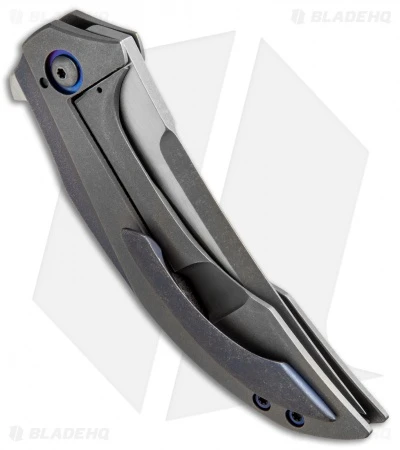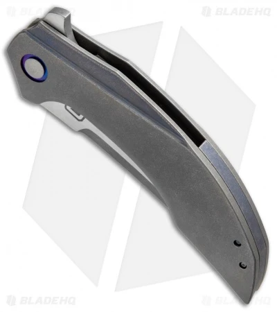 The TuffKnives Custom Persian from Geoff Blauvelt offers EDC perfection for the seasoned collector. This flipper knife has a comfortably contoured titanium frame lock handle with a stonewashed finish and blue anodized accents. The curved blade is made from CPM-154 with a two-tone finish. A sleek, blue anodized titanium pocket clip and back spacer finish off this flawless custom design.